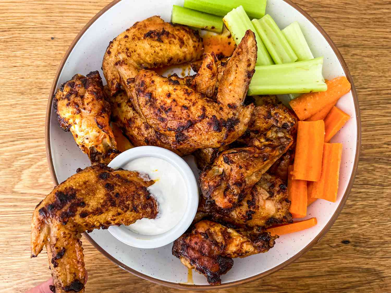 Bake – Arrange wings on a baking rack over a lined tray. Bake at 400°F (200°C) for 40–45 minutes, flipping halfway through.